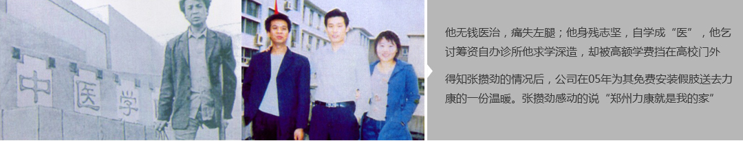 鄭州市力康假肢矯形器有限公司(簡稱力康),是一家專業(yè)從事假肢矯形器的設計、研發(fā)、制作及裝 配的專業(yè)機構。成立于1992年是河南省唯一一家福利企業(yè)。力康下設業(yè)務部、技術部、住院部、康復 部、售后服務部,并配有現(xiàn)代化的裝配車間和功能齊全的訓練大廳,為殘疾朋友康復訓練提供了可靠 保障。總經(jīng)理穿戴假肢多年,有著豐富的臨床經(jīng)驗和親身體會;多年來,力康已為全國幾十萬名殘疾 朋友安裝上舒適、美觀、耐用的假肢和矯形器具,使他們更大限度地恢復了正常的工作和生活。“產(chǎn) 品即人品”的質量理念、先進的技術、實惠的價格、完善的售后服務是力康取勝的法寶……